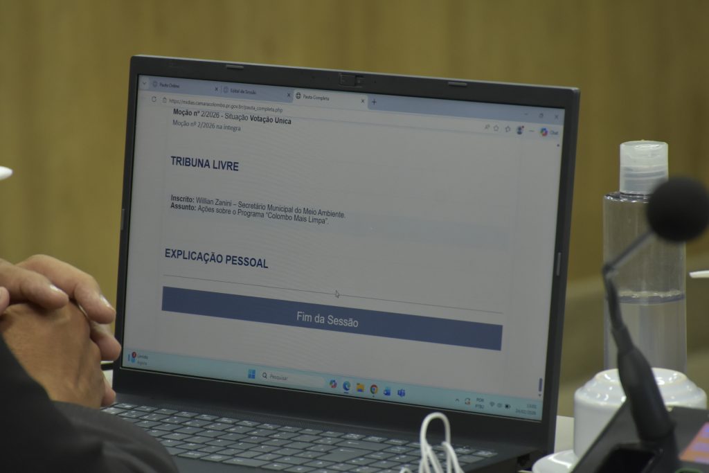 Moção – A Câmara Municipal de Colombo aprovou moção de louvor em reconhecimento à destacada atuação acadêmica, científica e profissional da Professora Tatiana Coelho de Sampaio, docente da Universidade Federal do Rio de Janeiro (UFRJ), pelo relevante trabalho desenvolvido na área das Ciências Biomédicas, contribuindo para o avanço da pesquisa científica, da inovação em saúde e da formação de pesquisadores e cientistas no Brasil. A proposição foi do vereador Professor Roger (Podemos). A votação dos requerimentos de moção é feita na segunda parte da ordem do dia, em turno único.